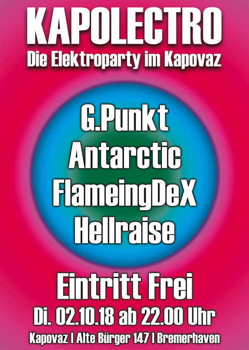 Es ist wieder soweit. Elektronische Tunes und Next-Level-Beats im Kapovaz! Die besten DJs unserer Breitengrade heißen euch Willkommen um dem Herbst mal richtig einzuheizen!