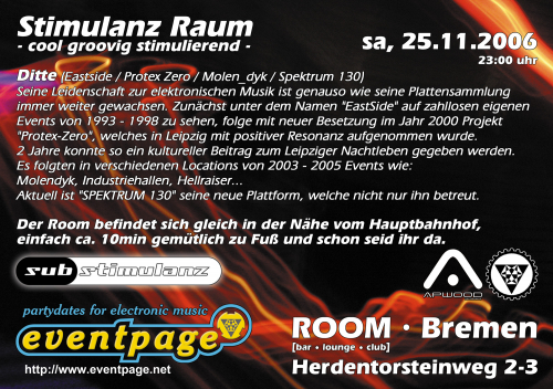 Mit beginn des Jahres 2006, wird das "SPEKTRUM 130" die neue Plattform, nicht nur für Ditte. Als Dj durfte er bislang neben folgenden Acts und an folgenden Orten sein können unter Beweis stellen: