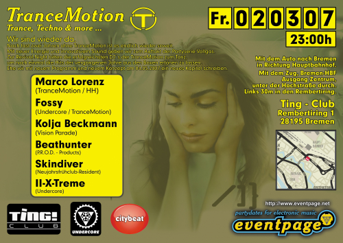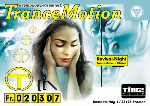 Nach fast zwei Jahren ohne TranceMotion ist es endlich wieder soweit. Mit neuer Energie und innovativem Sound geben wir zum Auftakt der Partyserie Vollgas. Zur Revival-Night bitten die erfolgreichsten DJ's der TranceMotion zum Tanz, um noch einmal die Hits der vergangenen Jahre aus den Boxen ertönen zu lassen. Ehe wir mit neuem Programm und neuem Konzept am 04.05.2007 ein neues Kapitel schreiben.