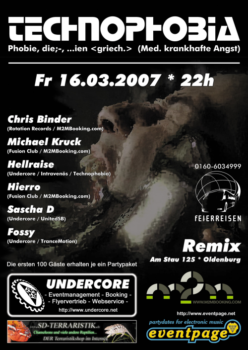 Am 16.03.2007 lädt im Remix zu Oldenburg die Technophobia zum Tanz.