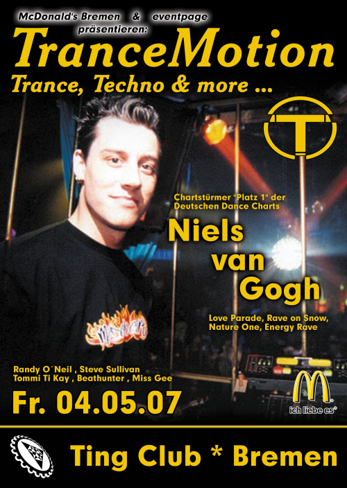 Der 27 jährige Augsburger Niels van Gogh steht schon seit 1994 an den Turntables sämtlicher Clubs und Events wie z.B. der Love Parade, Rave on Snow, Nature One Festival und dem Energy Rave in der Schweiz.
